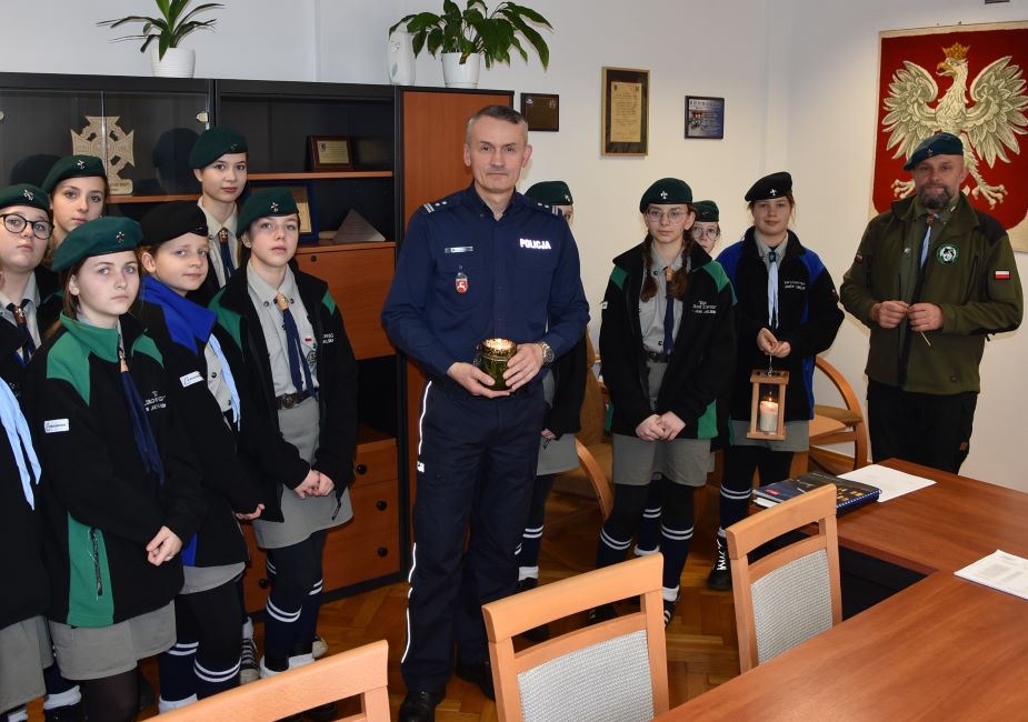 Harcerze z Betlejemskim Światłem Pokoju z wizytą u janowskich policjantów